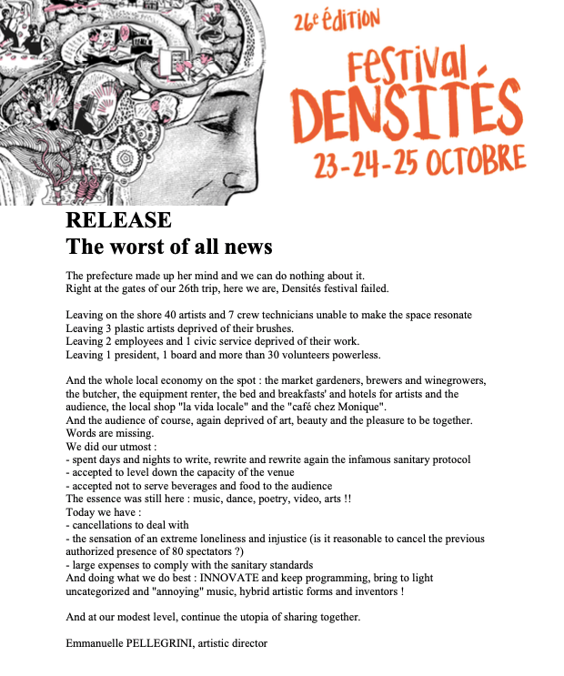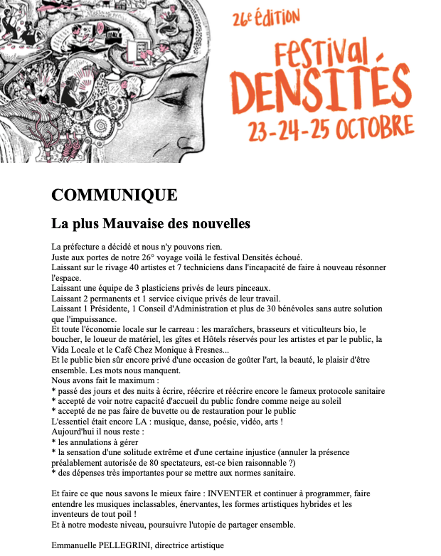 FESTIVAL DENSITÉS, La triste nouvelle…