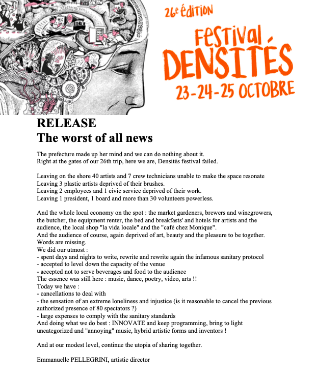 FESTIVAL DENSITÉS, La triste nouvelle…